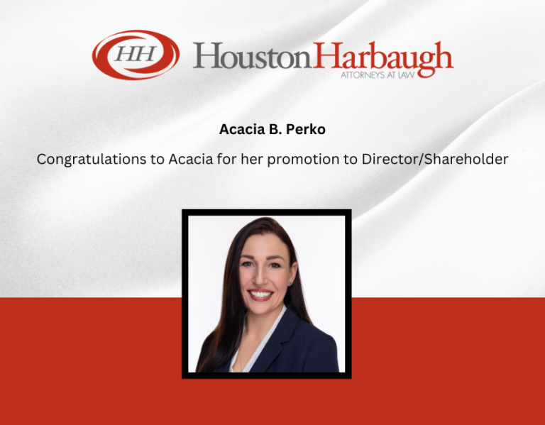 Houston Harbaugh – 50 years and going strong – is well known for its traditional strength in the fundamental areas of legal practice like corporate and commercial transactions, mergers and acquisitions, litigation, estates and trusts, health care, employment and labor, ERISA, environmental, oil and gas, and intellectual property litigation and prosecution. The firm has also developed a strong, forward looking focus on legal issues that reflect the growing benefits and threats of a rapidly changing legal and business frontier due to high technology, artificial intelligence (AI) and alternative energy. We provide corporate counsel to clients and litigate for them in cutting edge areas related to data breach, cybersecurity, computer fraud and abuse act, trade secret theft, DTSALaw®, patent prosecution and infringement litigation, Artificial Intelligence (AI), renewable energy, land use, employment restrictive covenants, and health care technology. Building Client Confidence®.